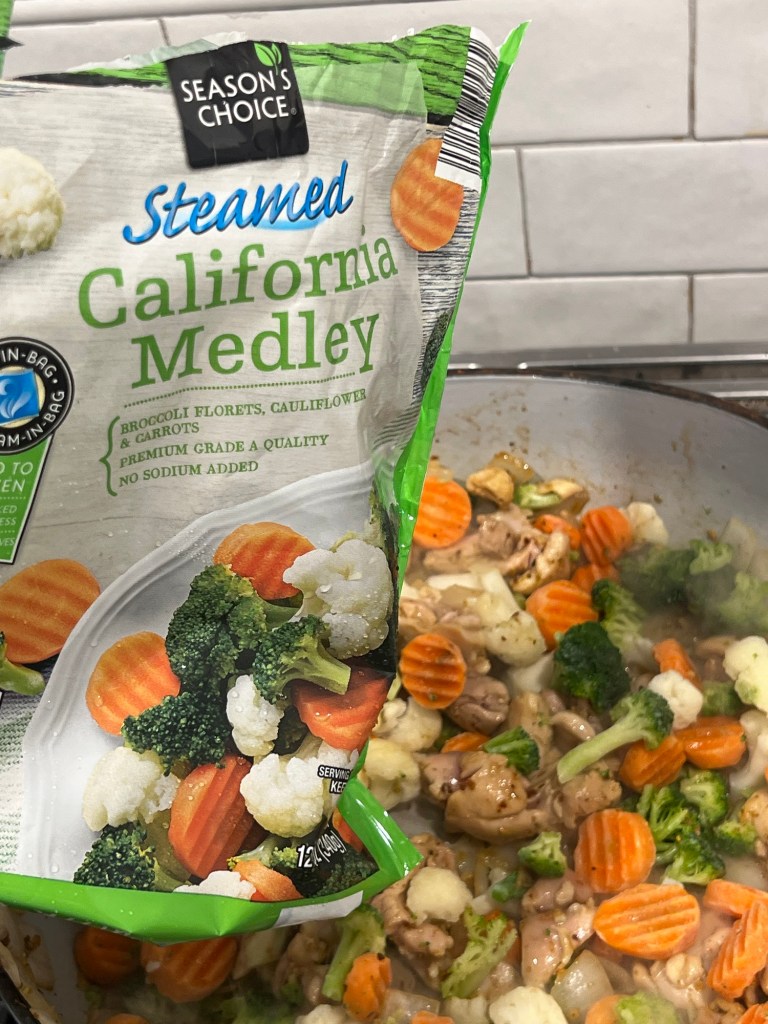 Tonight we had chicken stir fry. You can see the basic recipe on the previous blog post. Essentially it was just 3 Chicken Thighs diced, a diced onion, and a bag of frozen mixed vegetables that I got from the ALDIs down the street. I also made a cup of uncooked rice. I used seasoning I already had. That was dinner 1 of 7. It’s not fancy, but if you know me well you already know I’m not fancy.